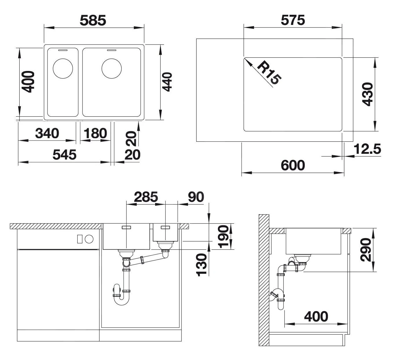 - dimensioni del lavello più piccolo: 180 x 400 x 130 mm (lunghezza x larghezza x profondità)