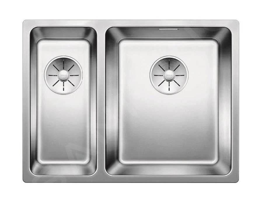 - lavello doppio senza gocciolatoio, lavello più grande a destra
