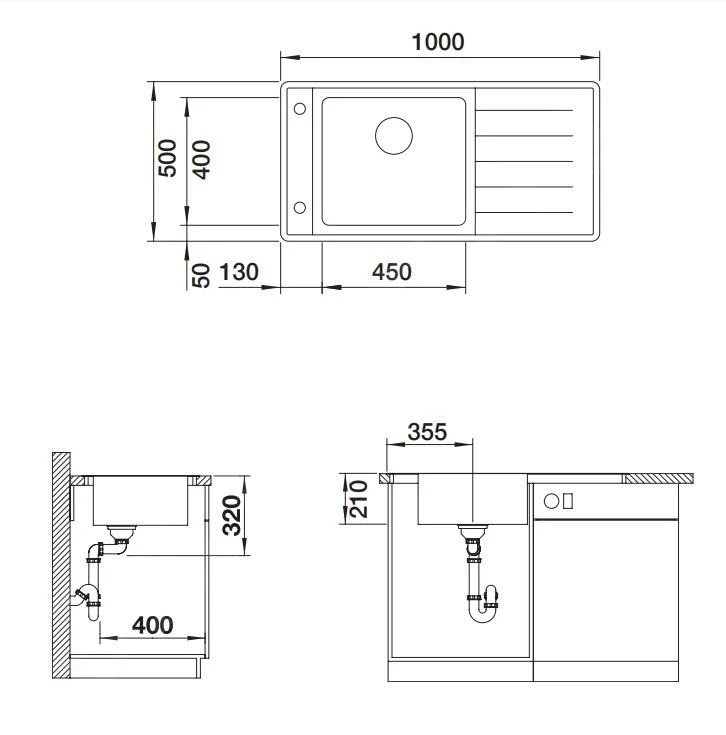 - dimensione totale: 1000 x 500 x 210 mm (lunghezza x larghezza x profondità)