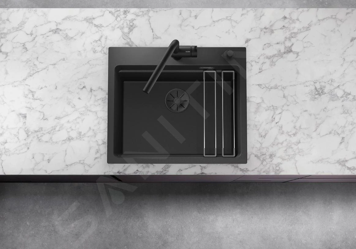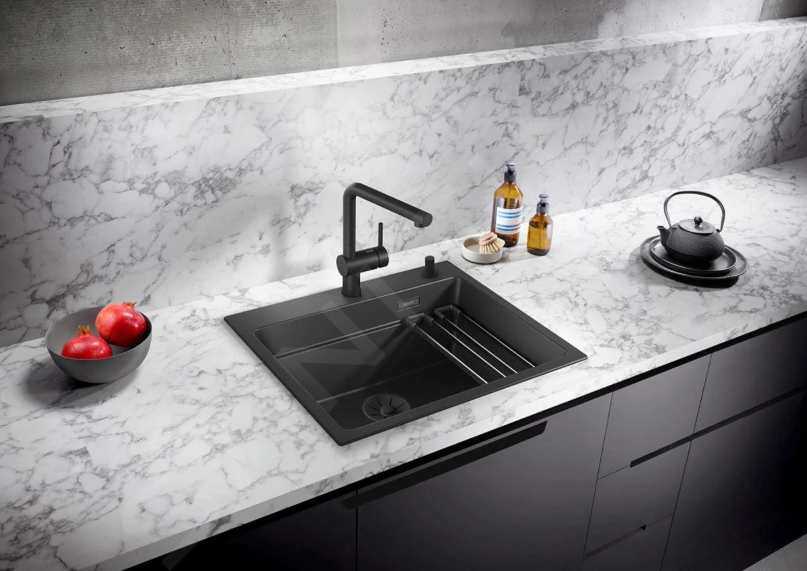 Lavello di lusso in silgranit nero con guide della gamma Black Edition