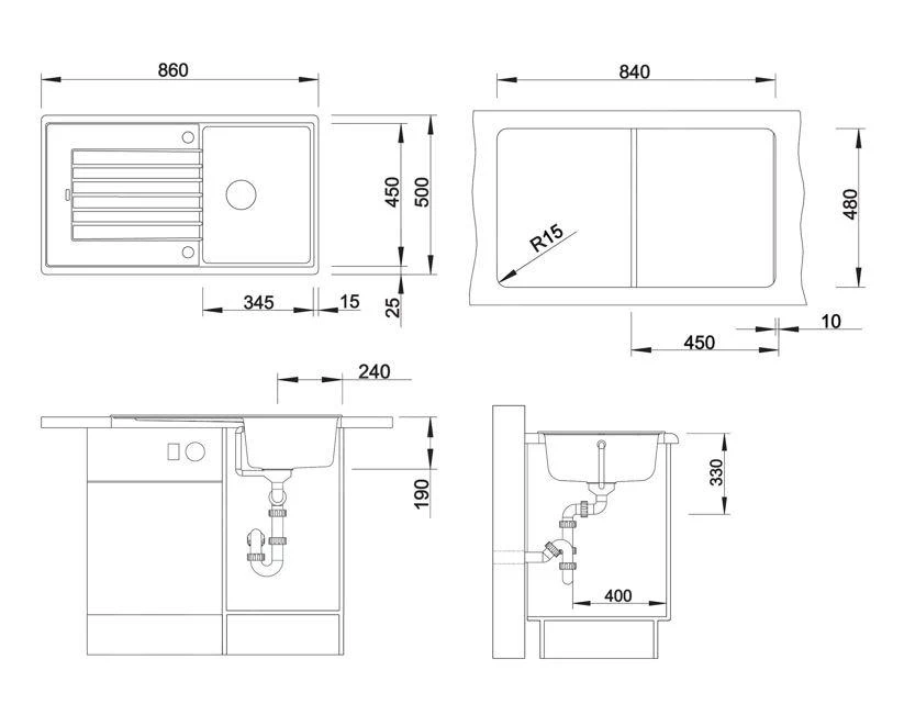 | Lato lungo del lavello [mm] | 860 |