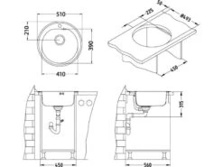 Alveus Altone – Lavello 780×435 Mm, Con Comando Dello Scarico, Vetro Nero/acciaio Inox 1114558